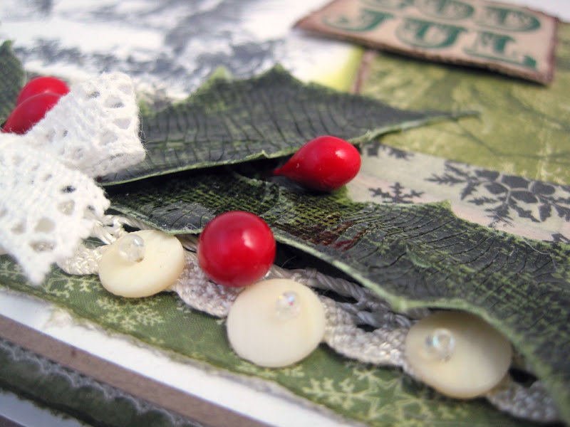 I also used Tim Holtz tissue tape, a doily and Distress Inks.